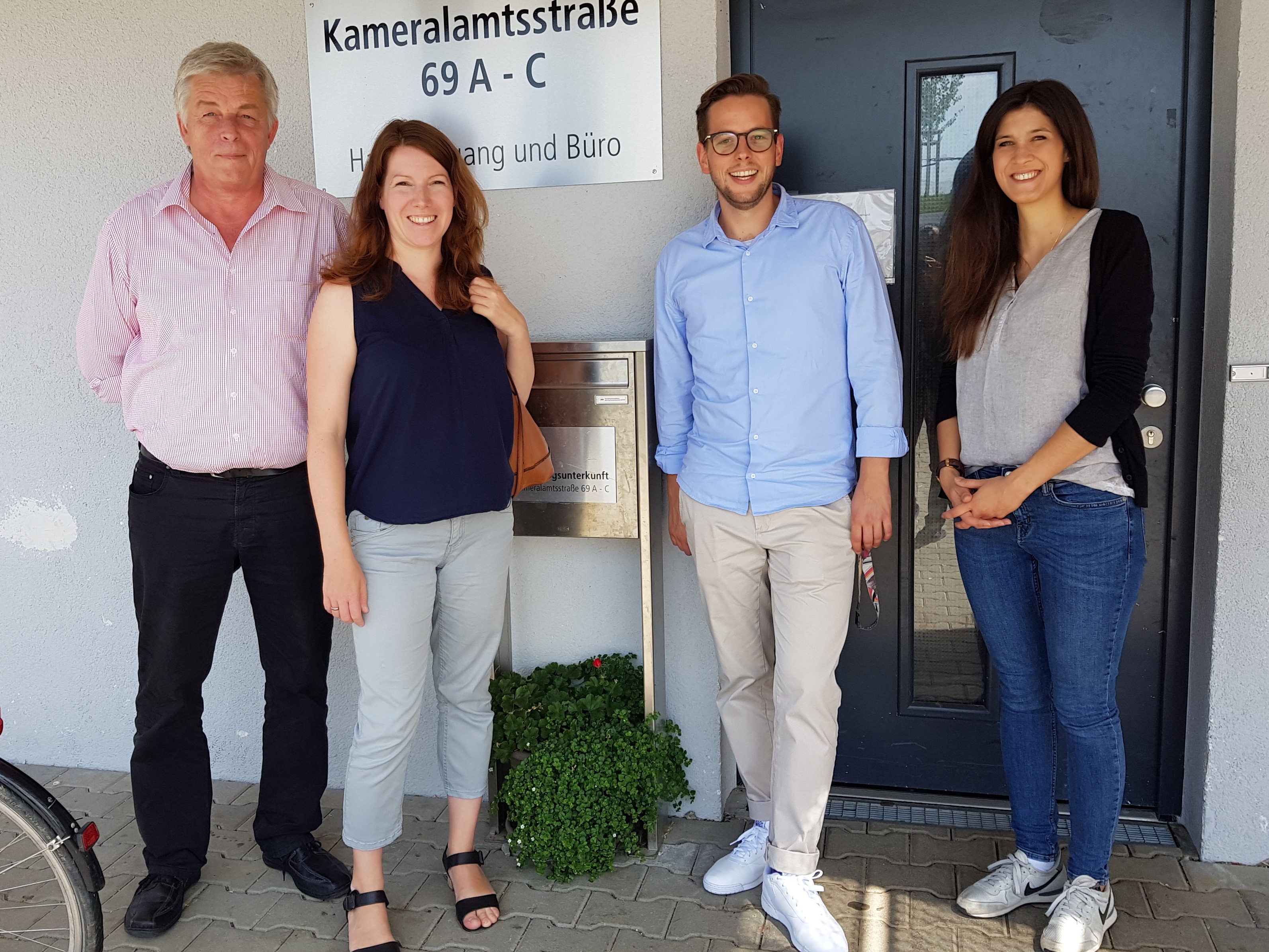 Friedhelm Nöh (Geschäftsführer AWO Stuttgart) mit Dr. Anna Christmann (Büdnis 90/Die Grünen) und Johannes Engelhardt und Simone Klotz (Flüchtlingssozialarbeiter*