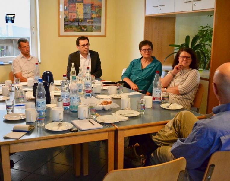 Ute Vogt MdB (SPD) und Leni Breymaier (Vorsitzende SPD in Baden-Württemberg) im Gespräch mit dem Caritasvorstand Uwe Hardt und MItarbeitenden des Caritasverband für Stuttgart e.V.